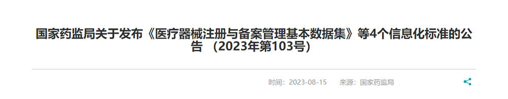 國家藥監(jiān)局關(guān)于發(fā)布《醫(yī)療器械注冊與備案管理基本數(shù)據(jù)集》等4個(gè)信息化標(biāo)準(zhǔn)的公告..